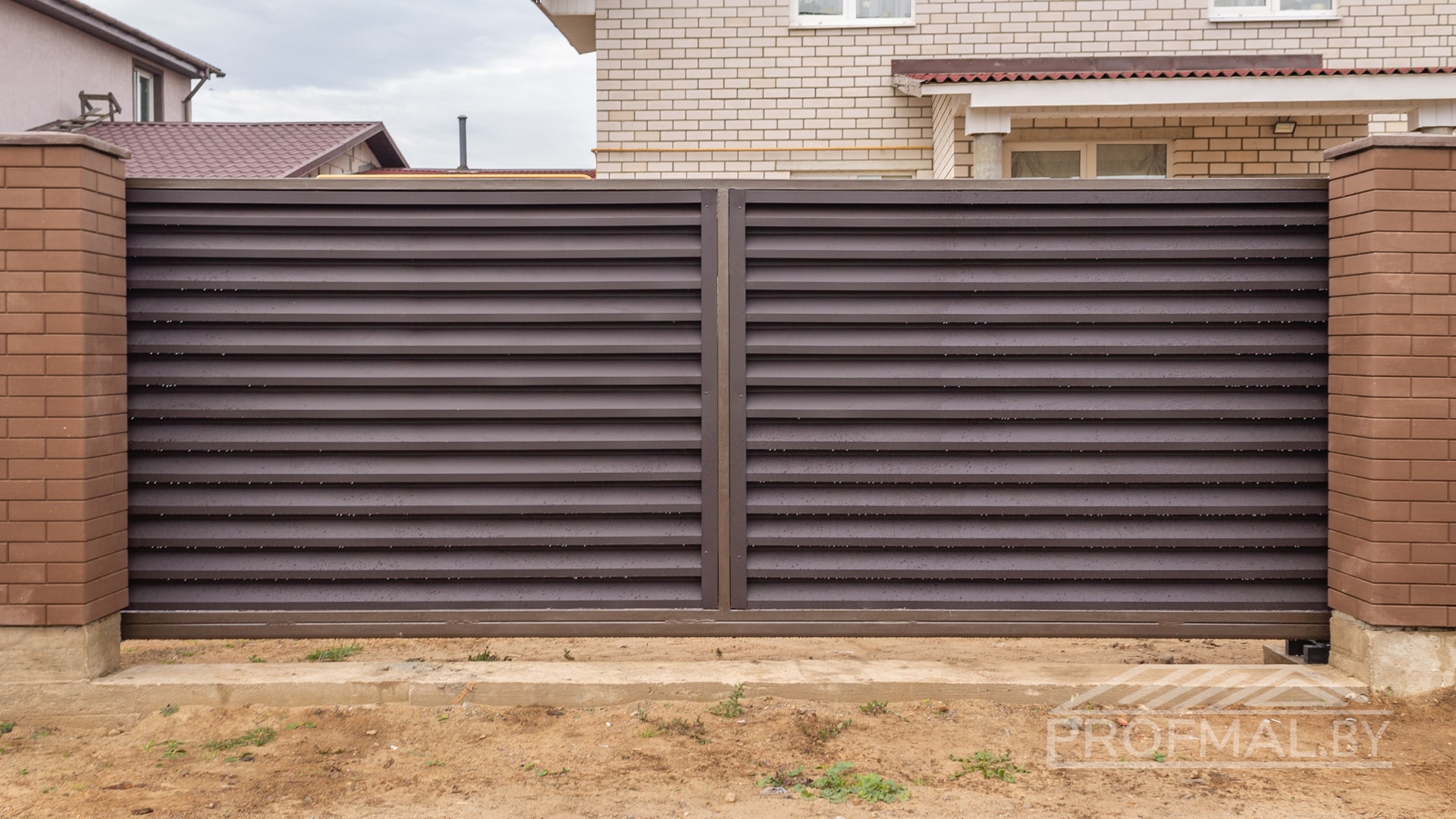 Монтаж ограждения "Жалюзи RAL 8019MAT" + калитка + ворота откатные