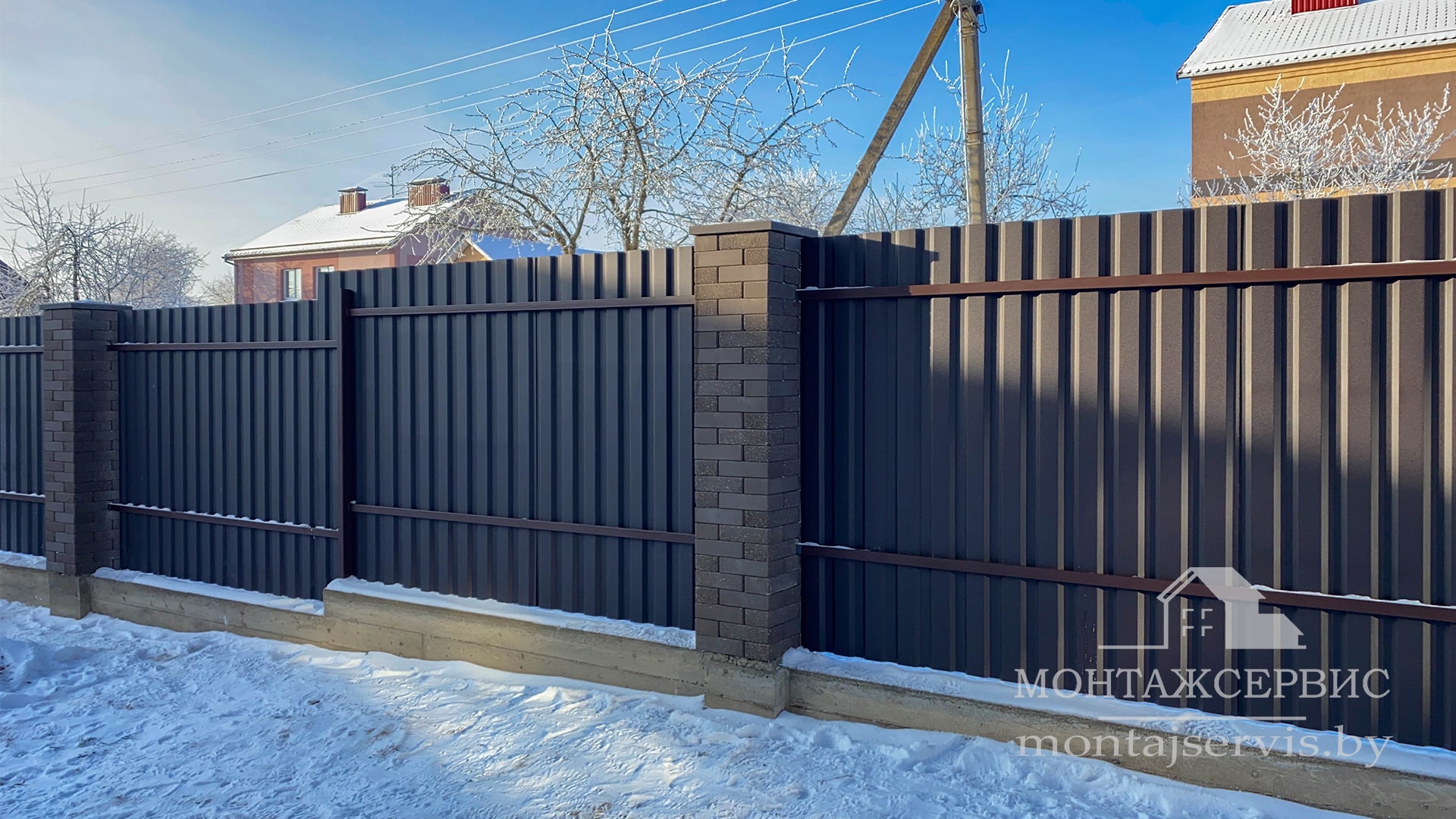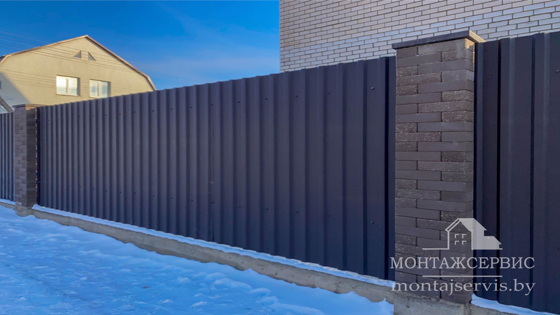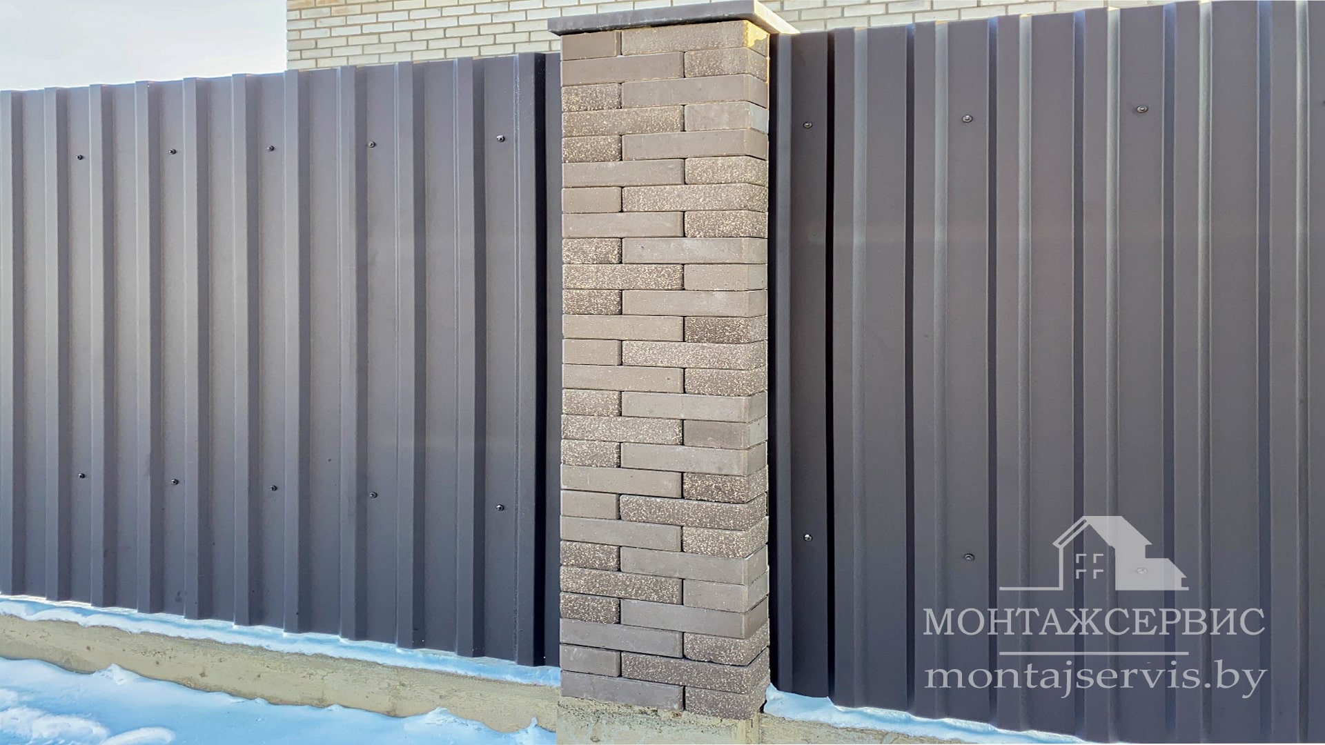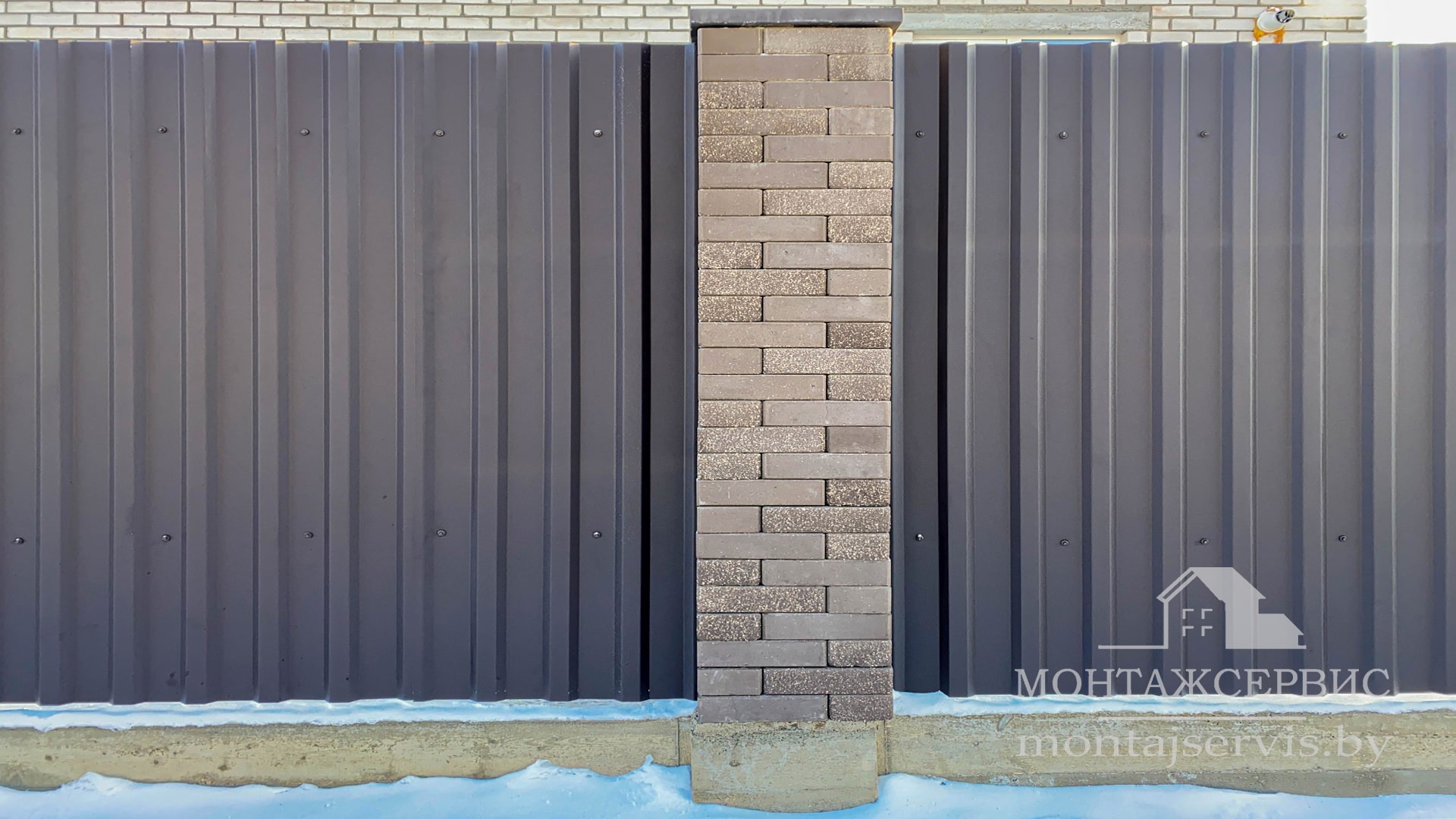 • Монтаж забора из ЛЕГО КИРПИЧА, профнастила МП-20 RAL 8019 MAT