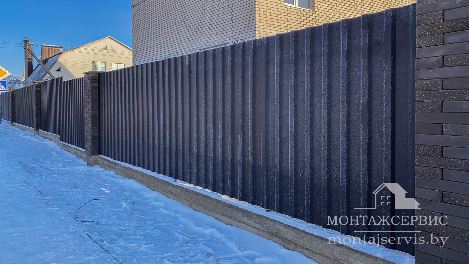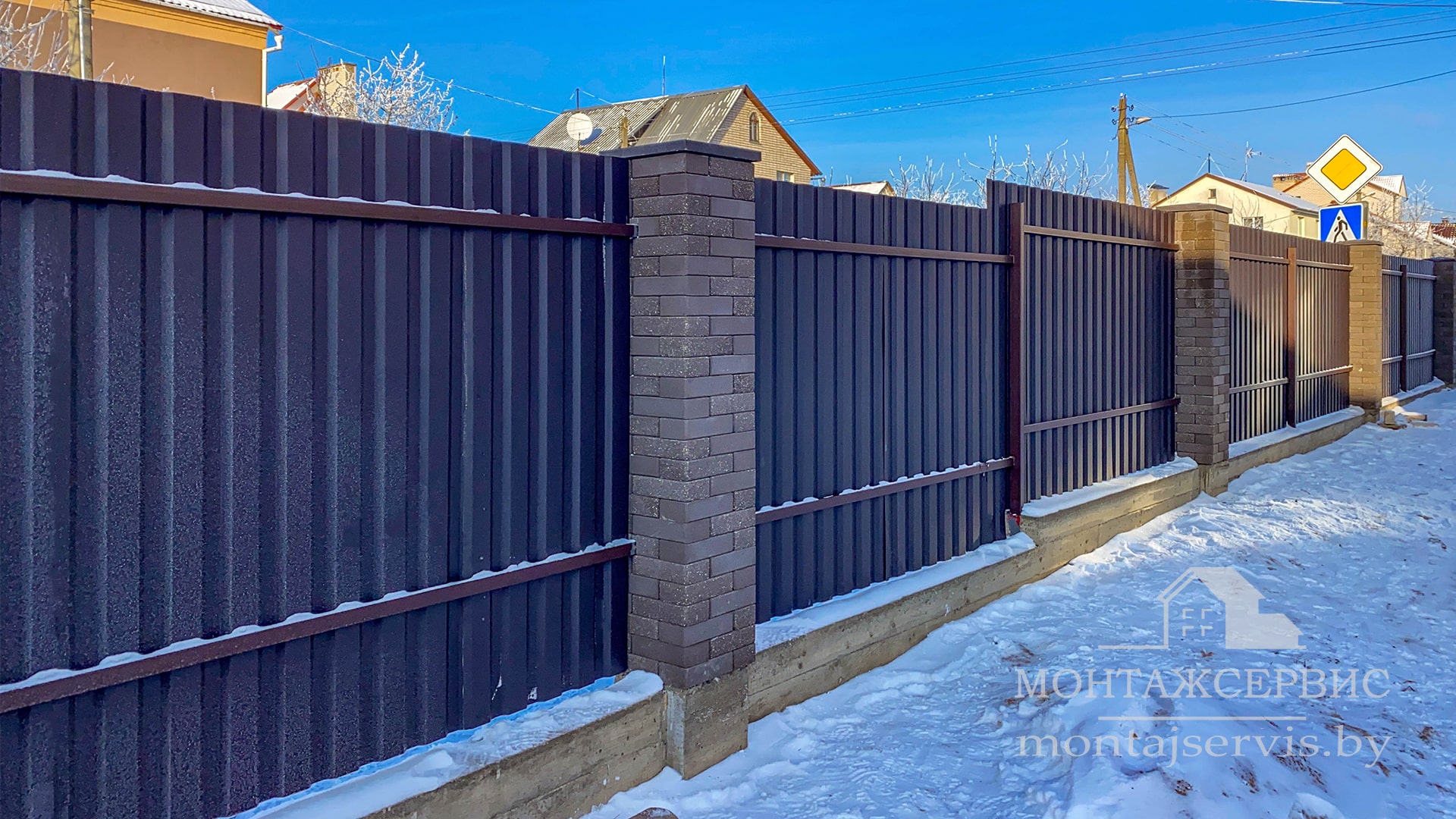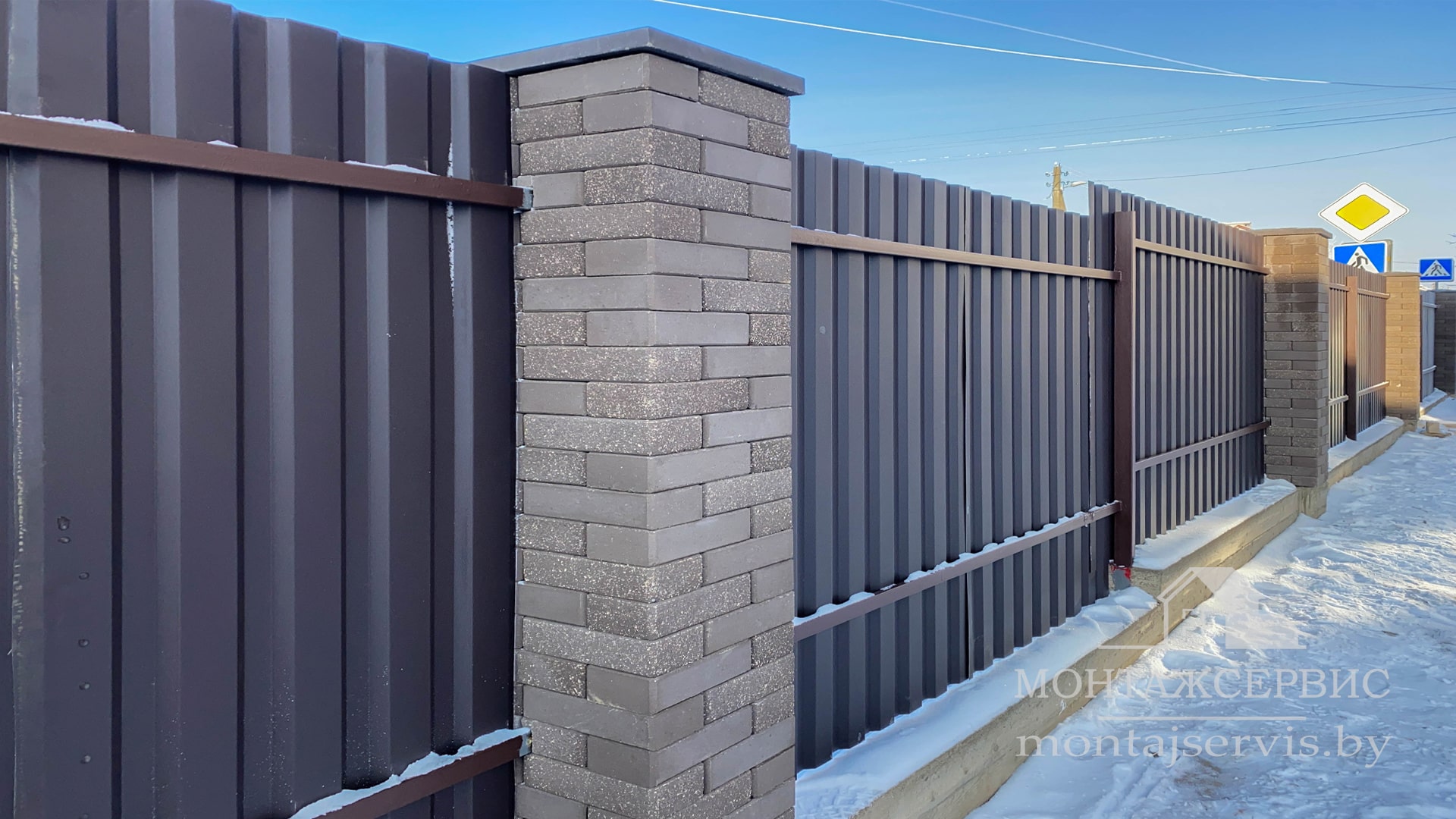 • Монтаж забора из ЛЕГО КИРПИЧА, профнастила МП-20 RAL 8019 MAT