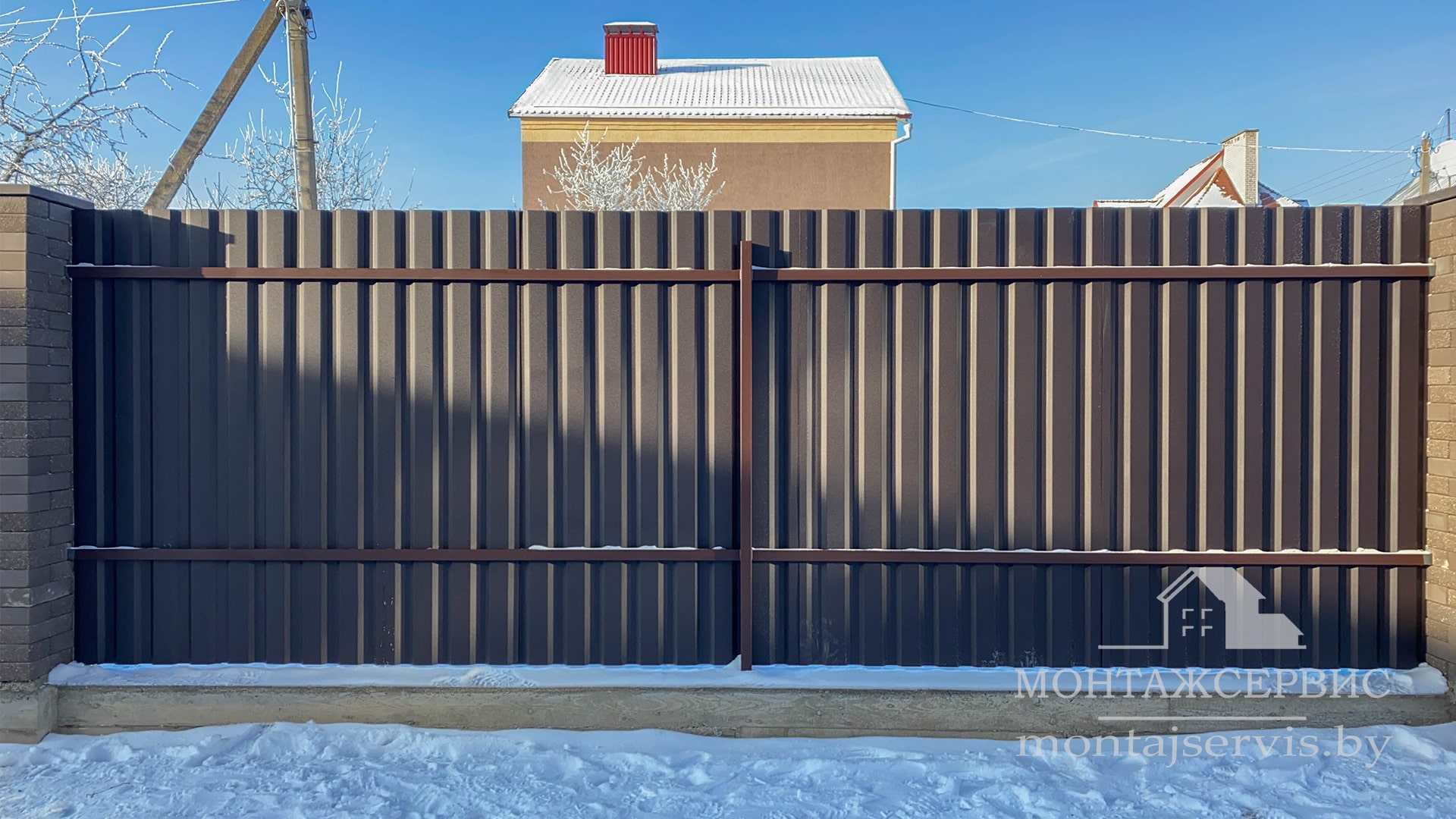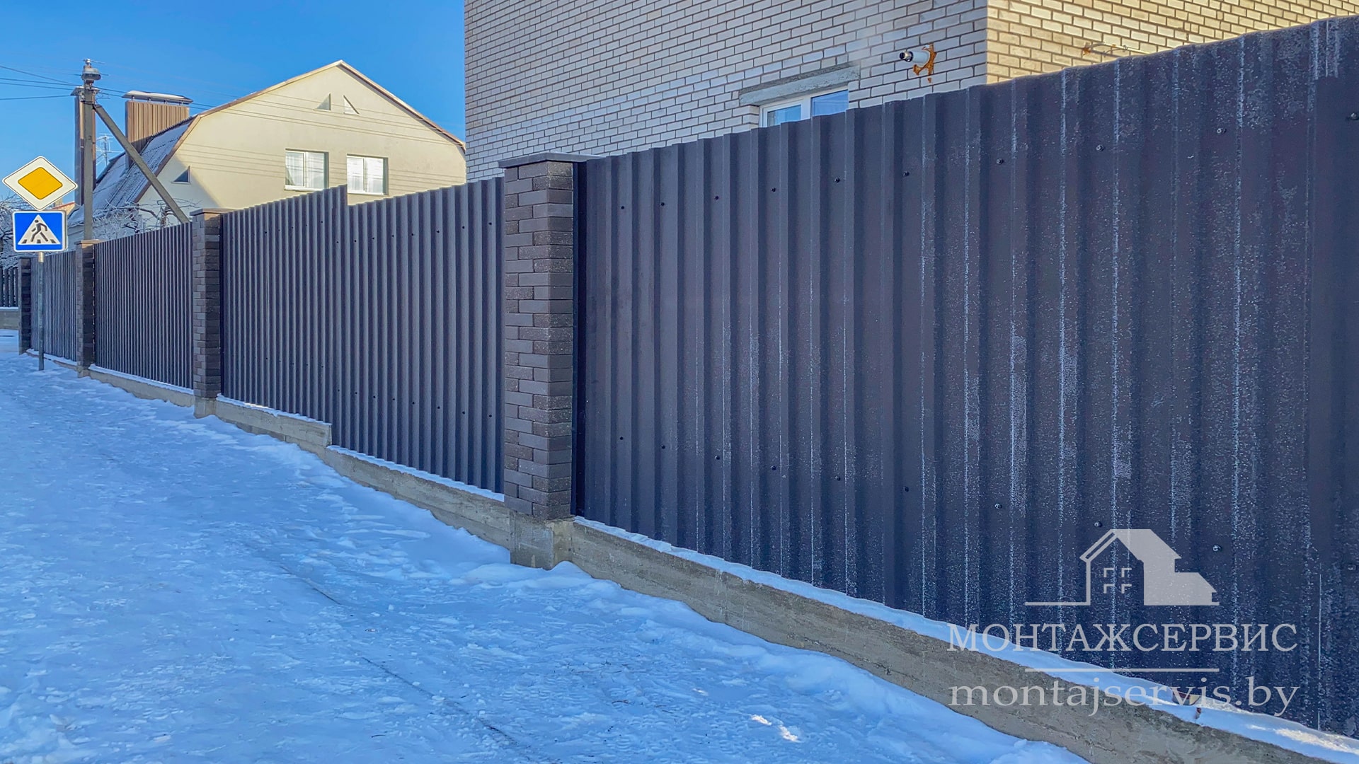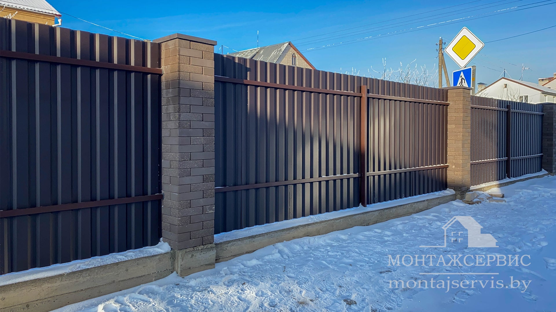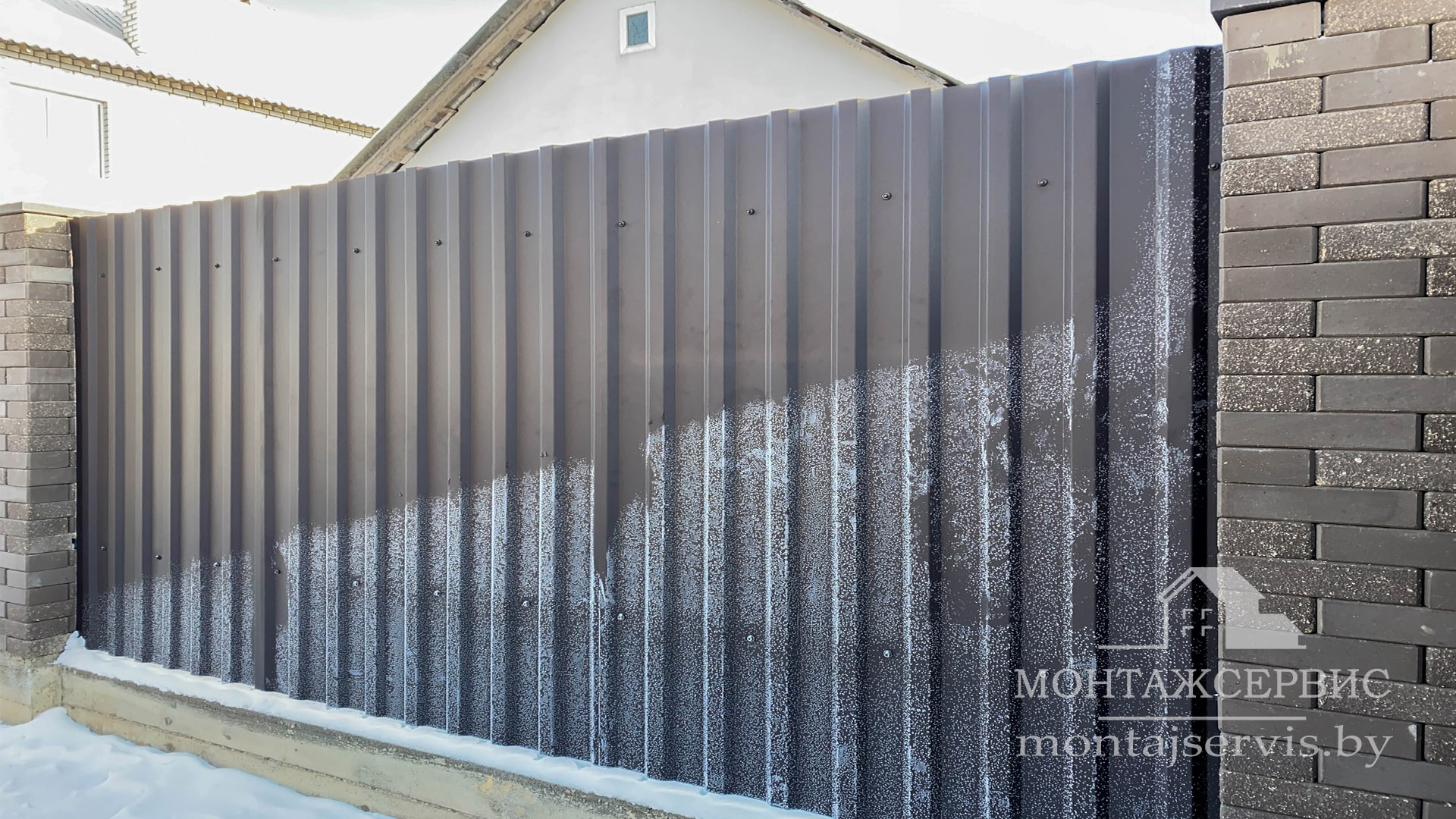 • Монтаж забора из ЛЕГО КИРПИЧА, профнастила МП-20 RAL 8019 MAT