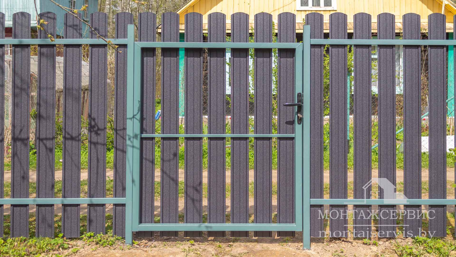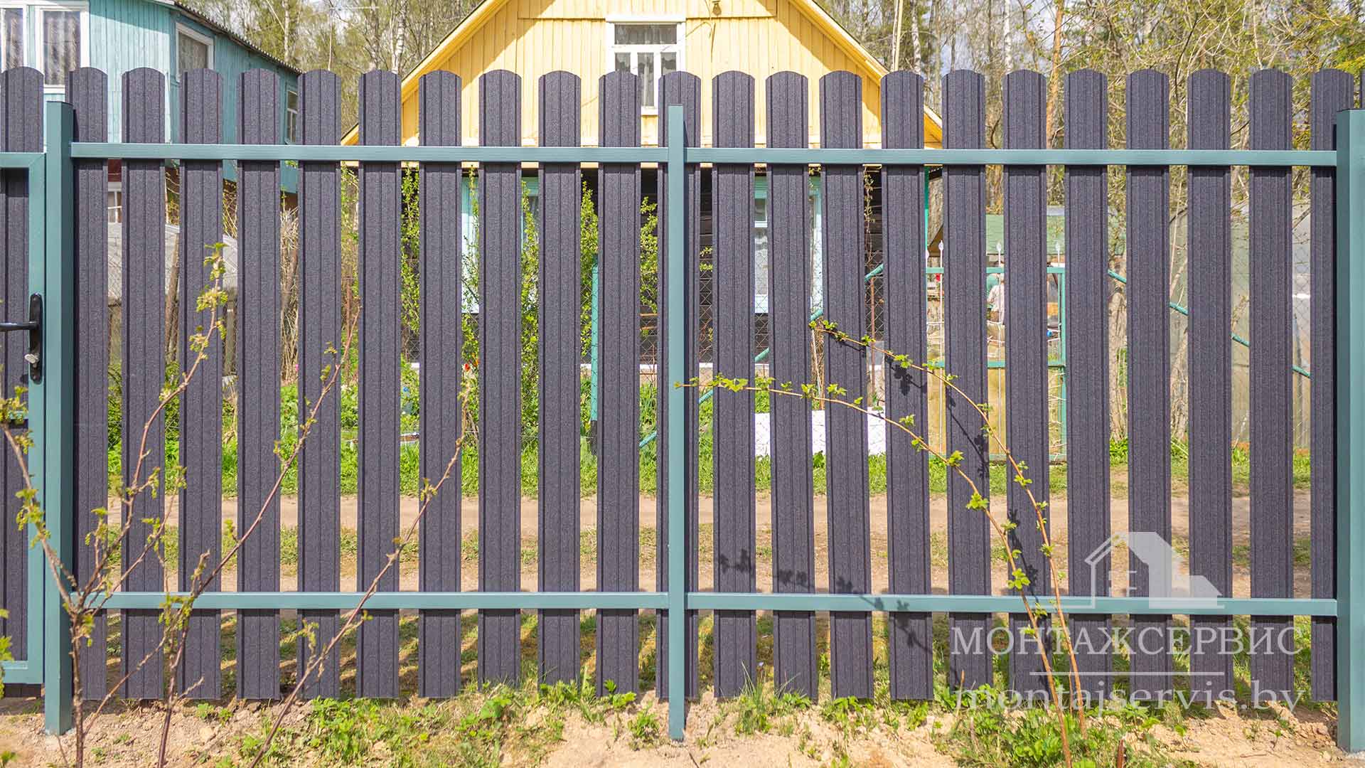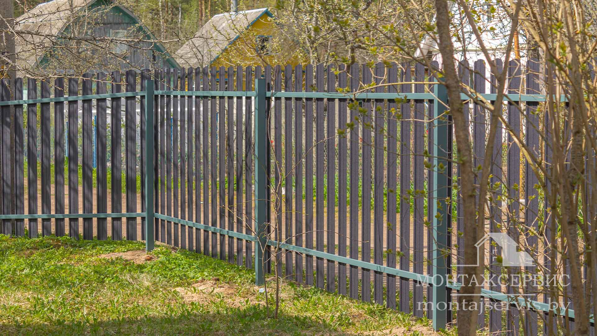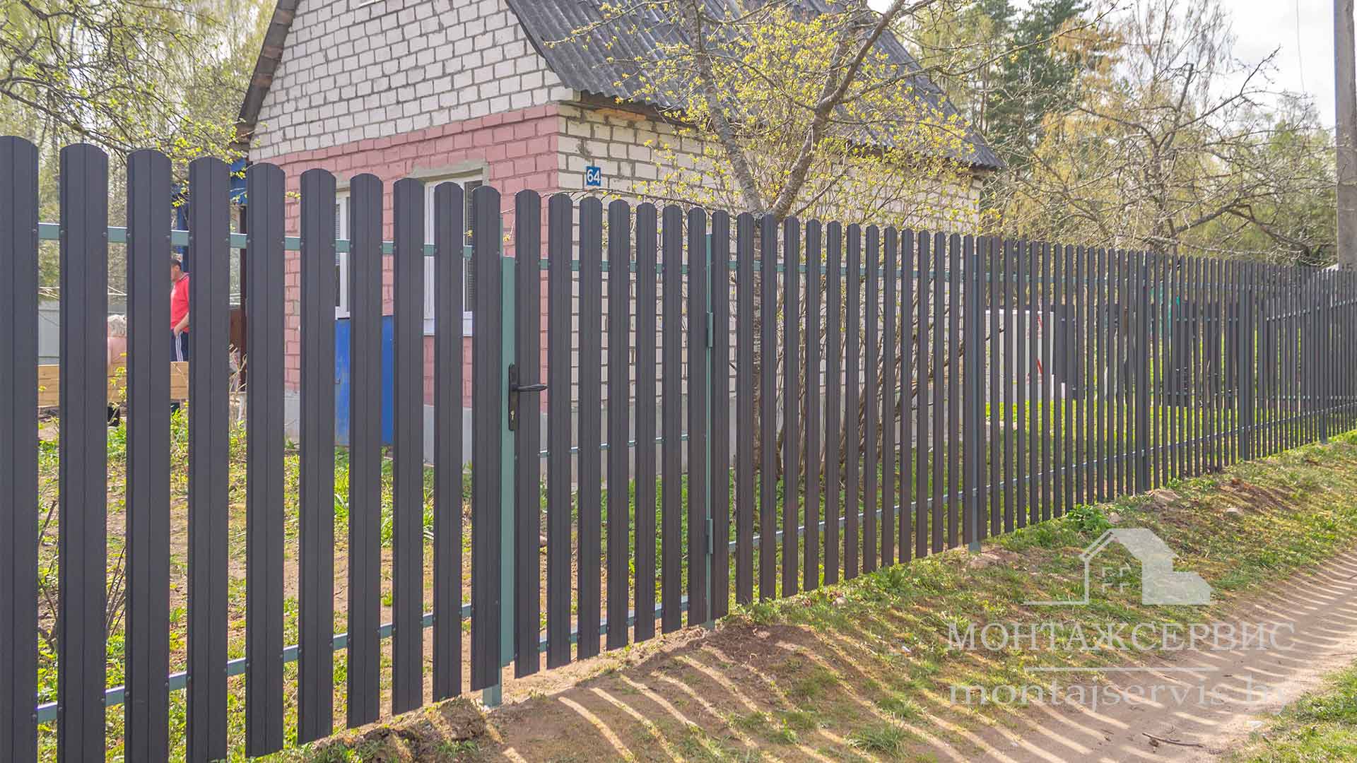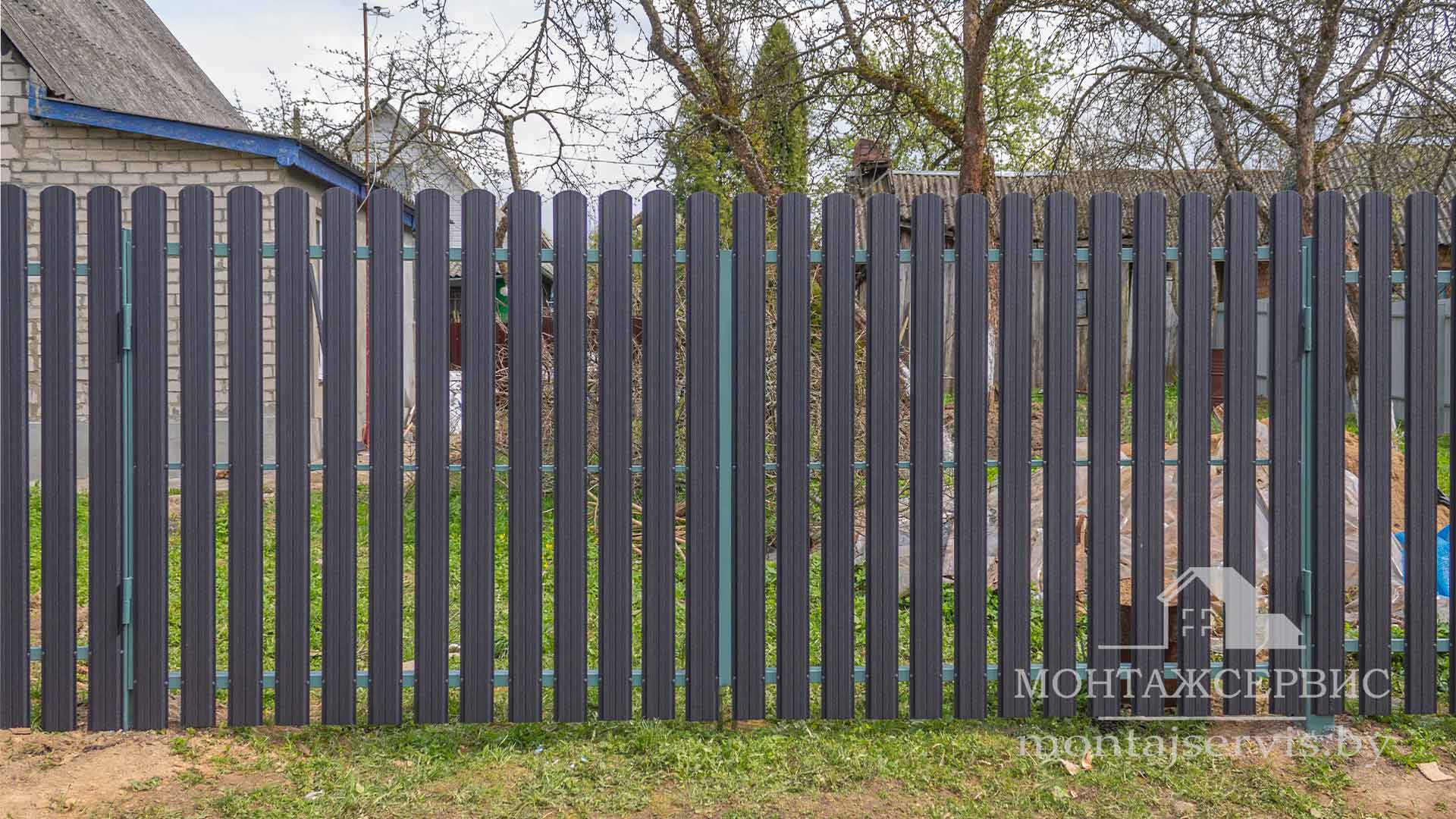Монтаж забора из металлического штакетника "КЛАССИК 114 мм" RAl 5004 МАТ" + ворота распашные + калитка