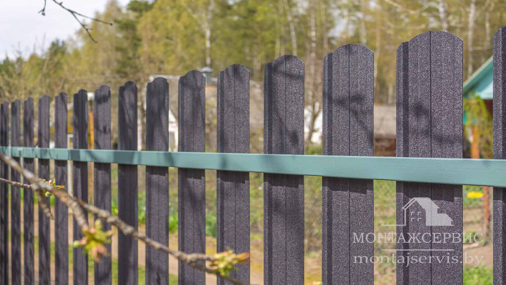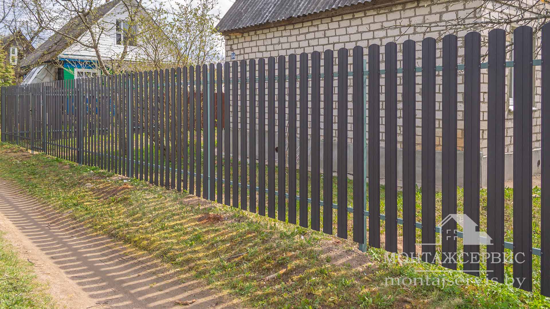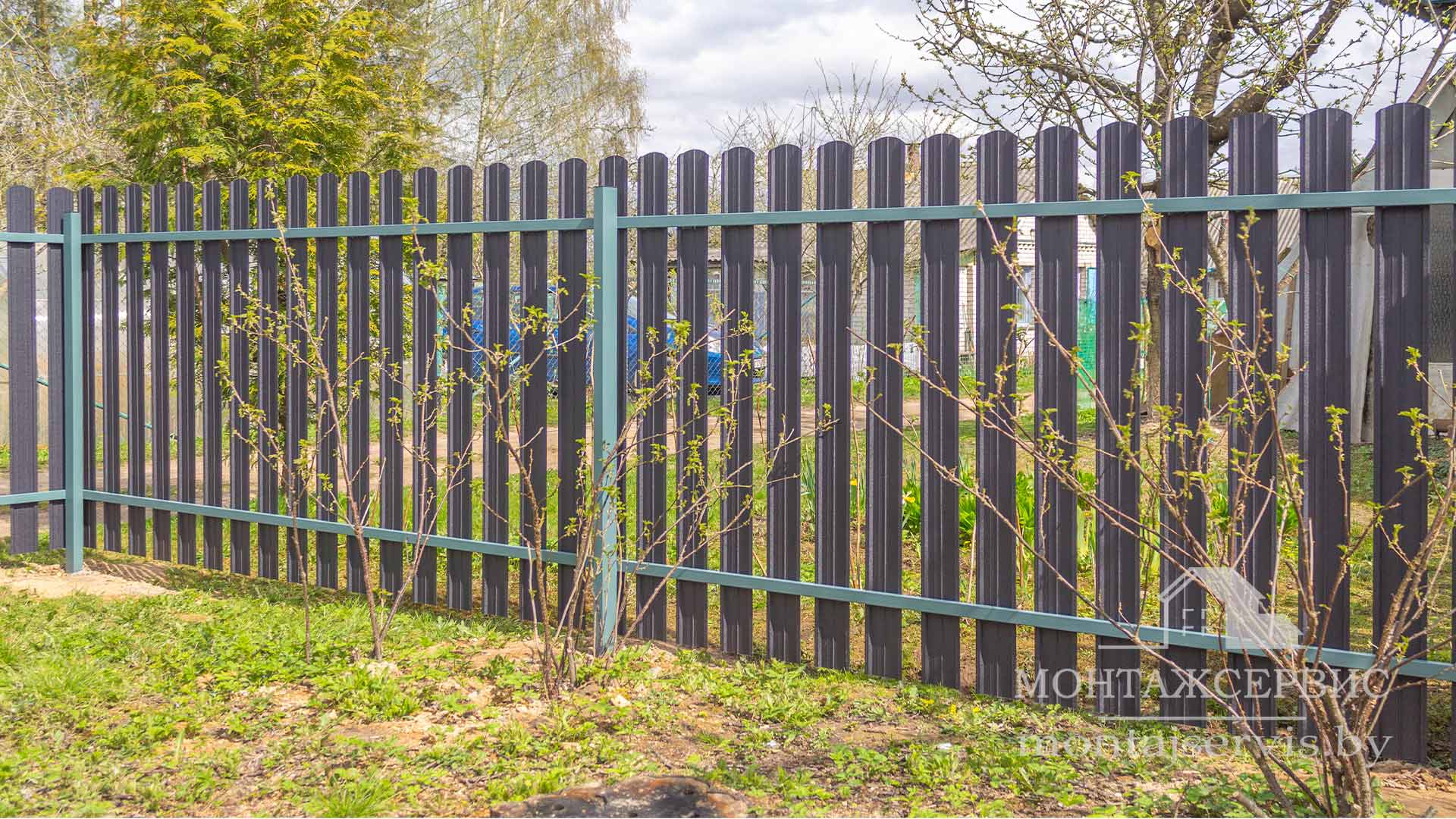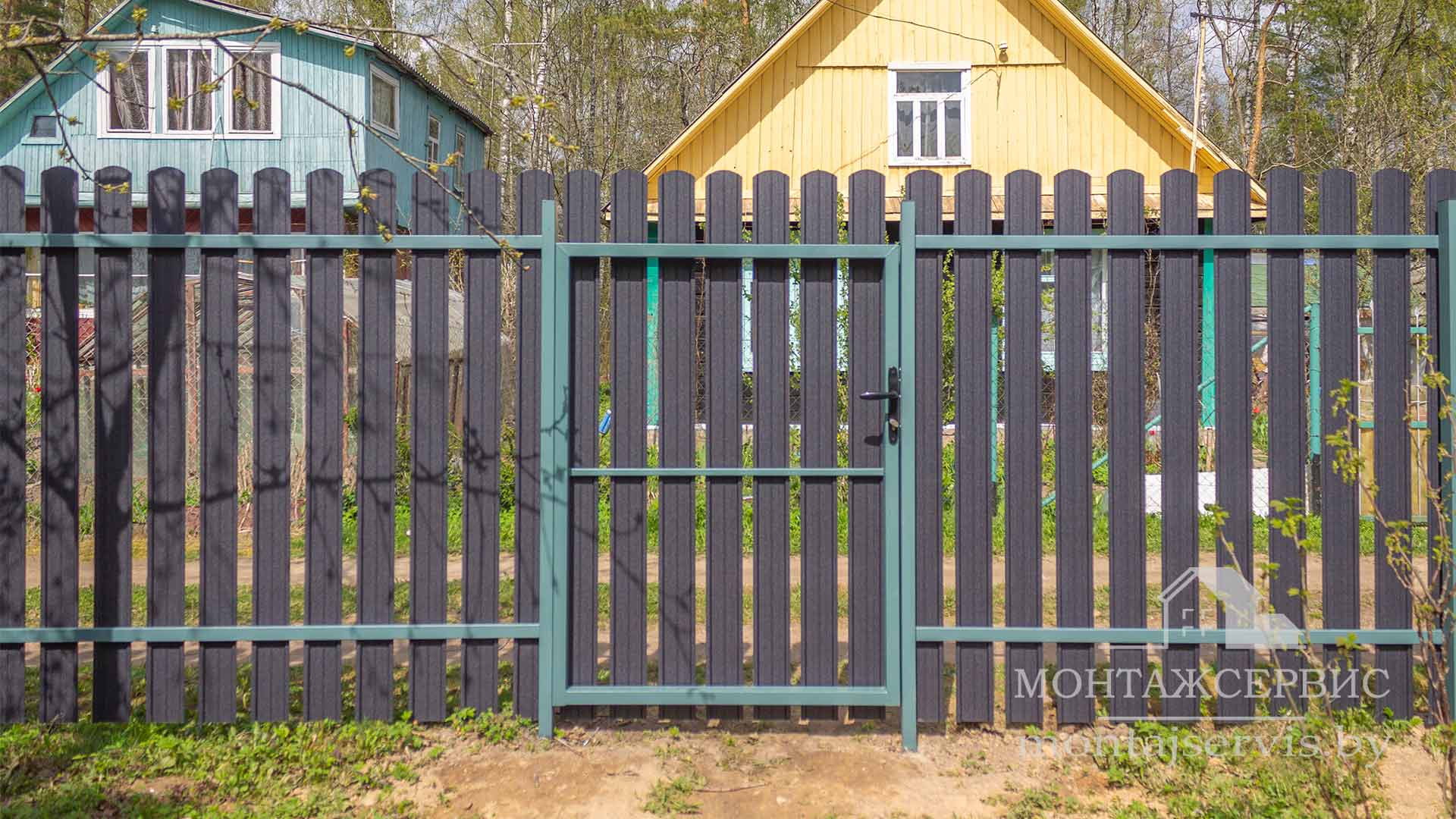 Монтаж забора из металлического штакетника "КЛАССИК 114 мм" RAl 5004 МАТ" + ворота распашные + калитка