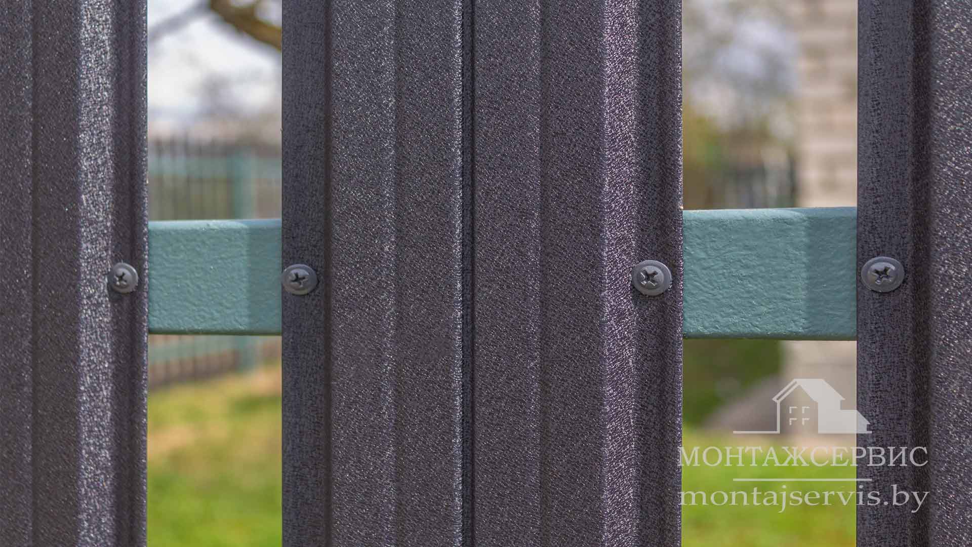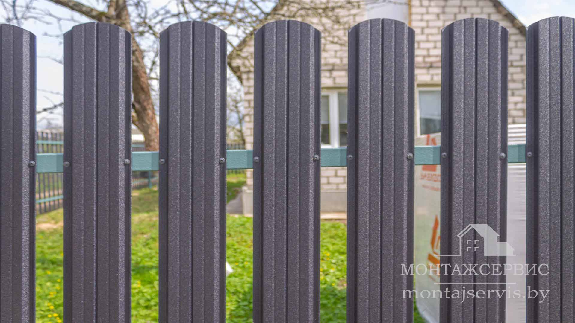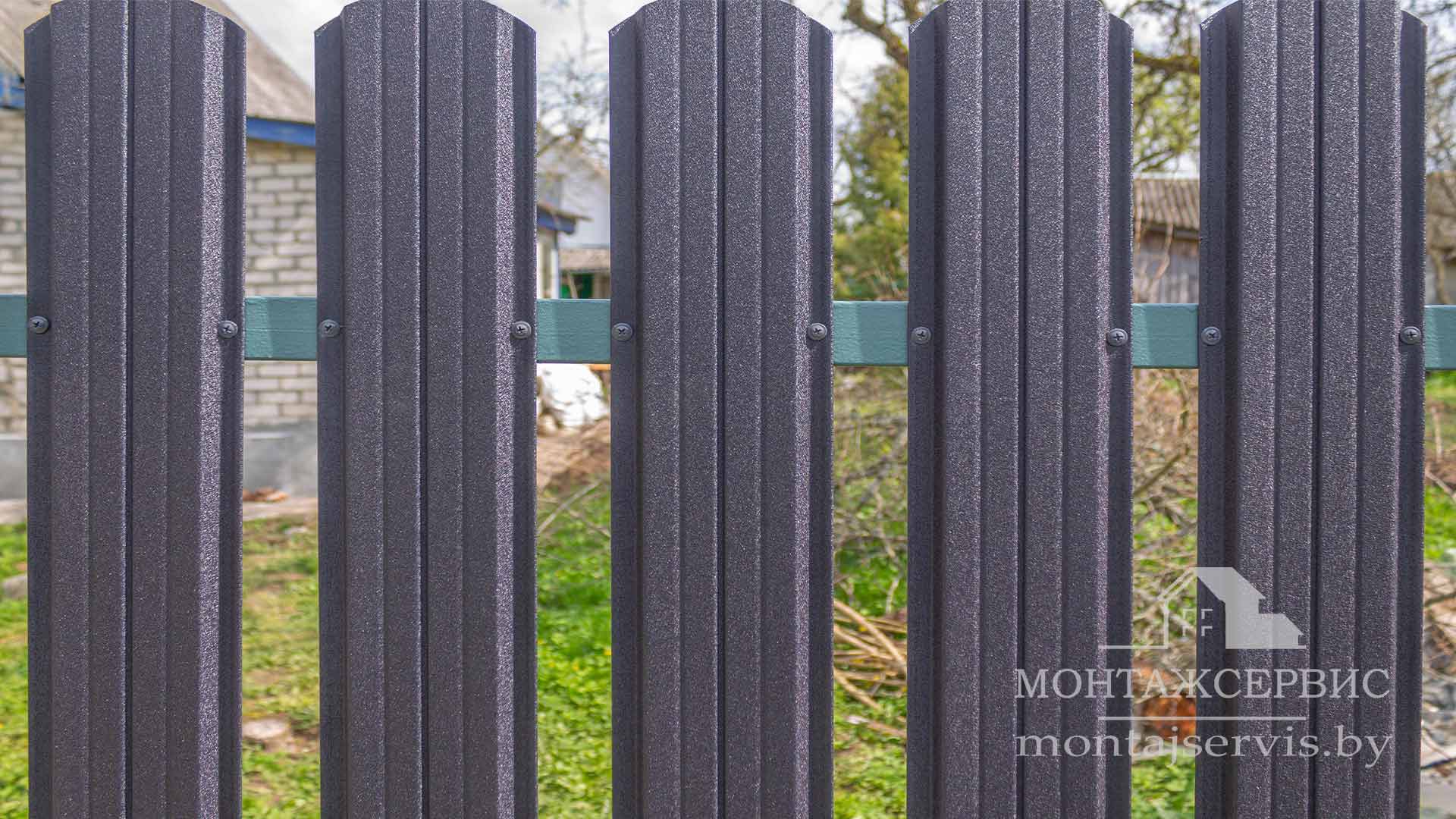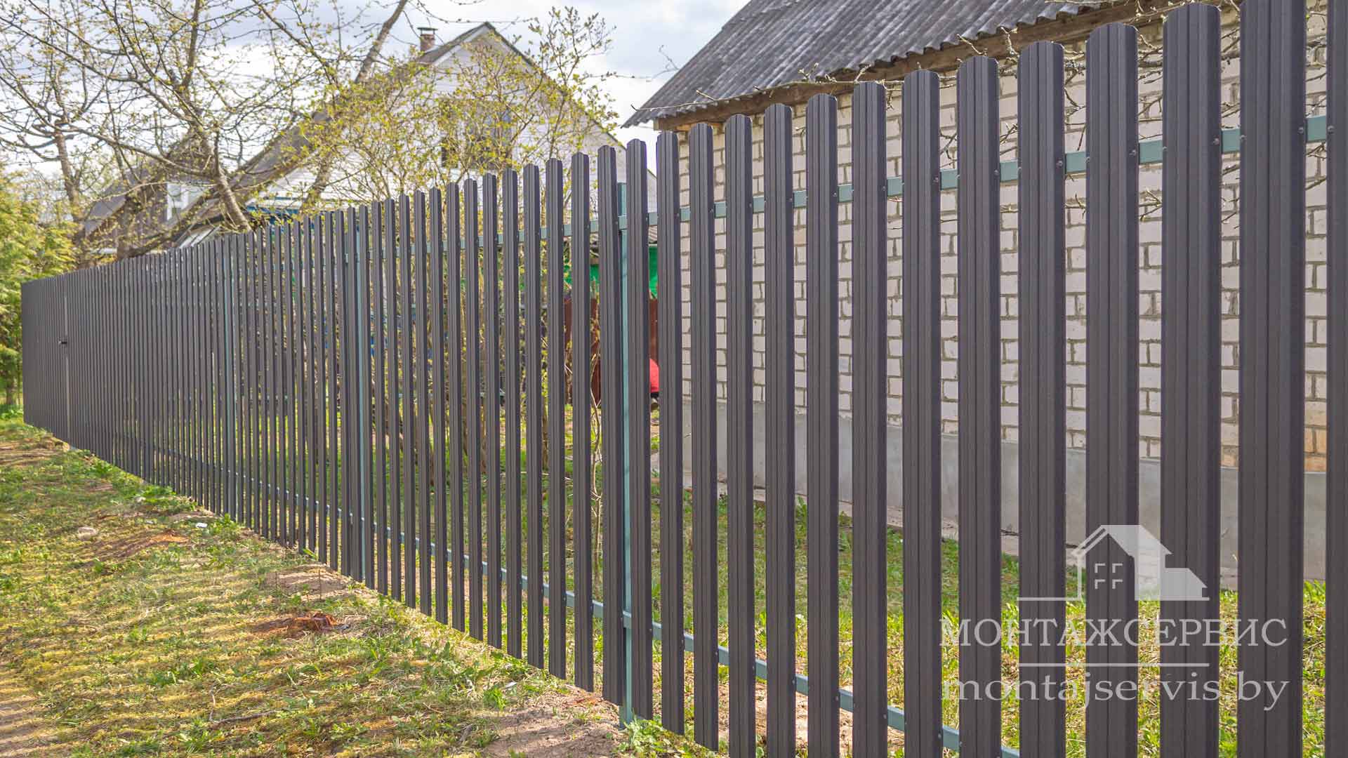 • Монтаж забора из металлического штакетника "КЛАССИК 114 мм" RAl 5004 МАТ" + ворота распашные + калитка