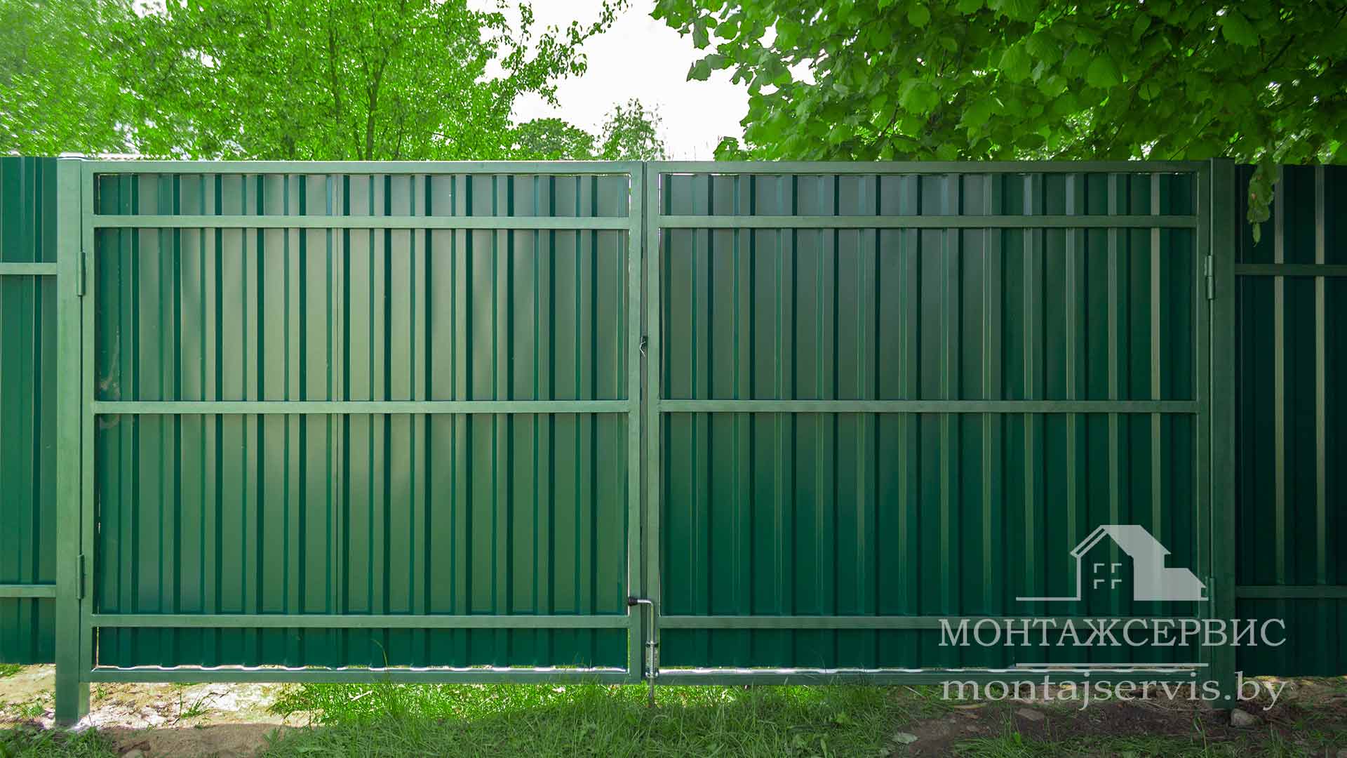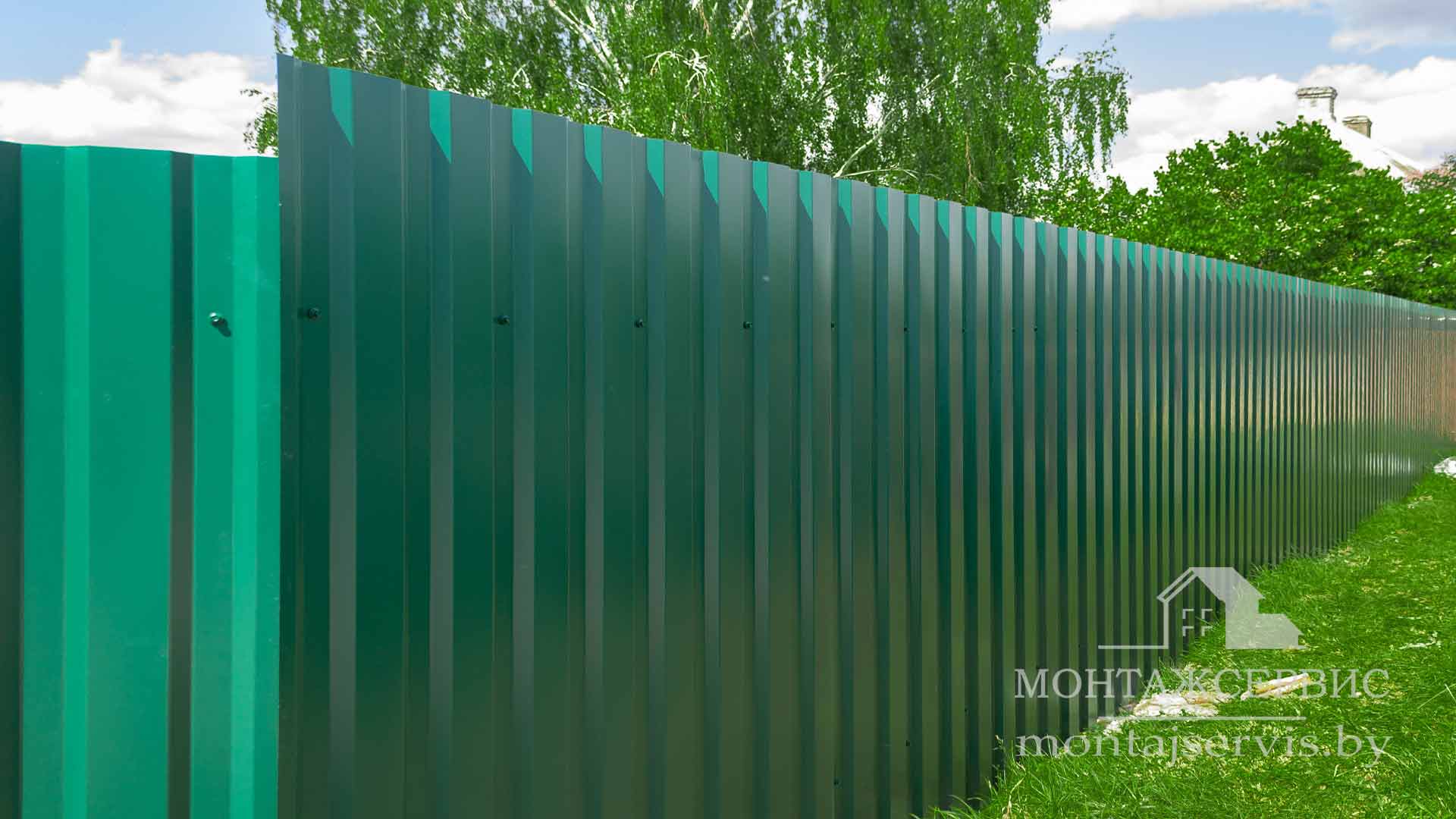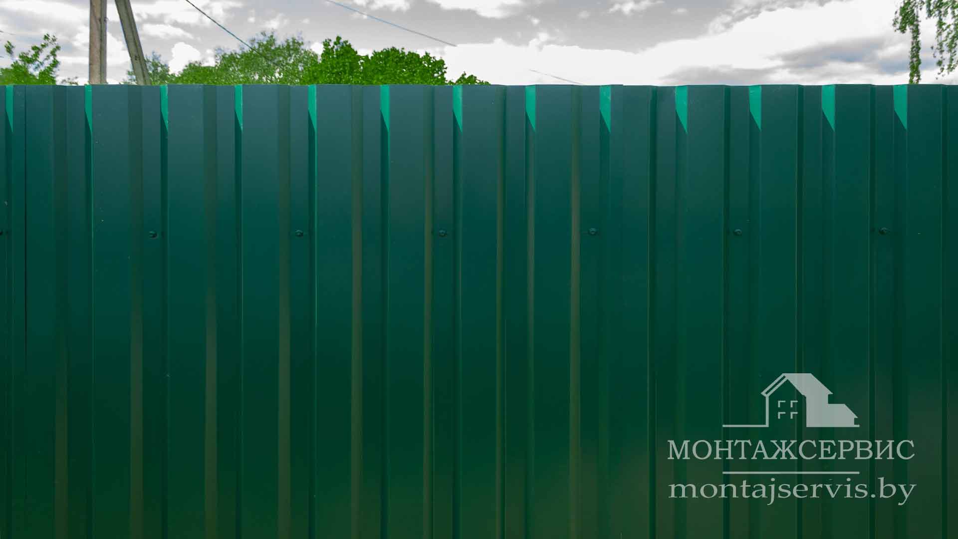 Монтаж забора из профнастила МП-20 RAL 6005 глянец + ворота распашные + калитка