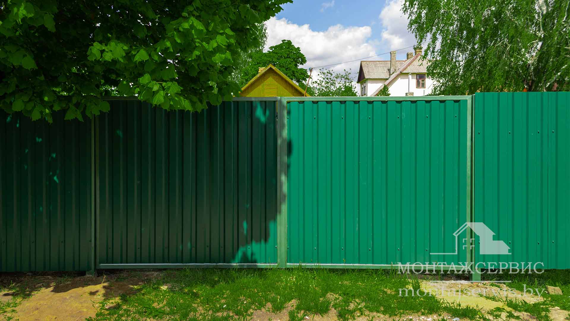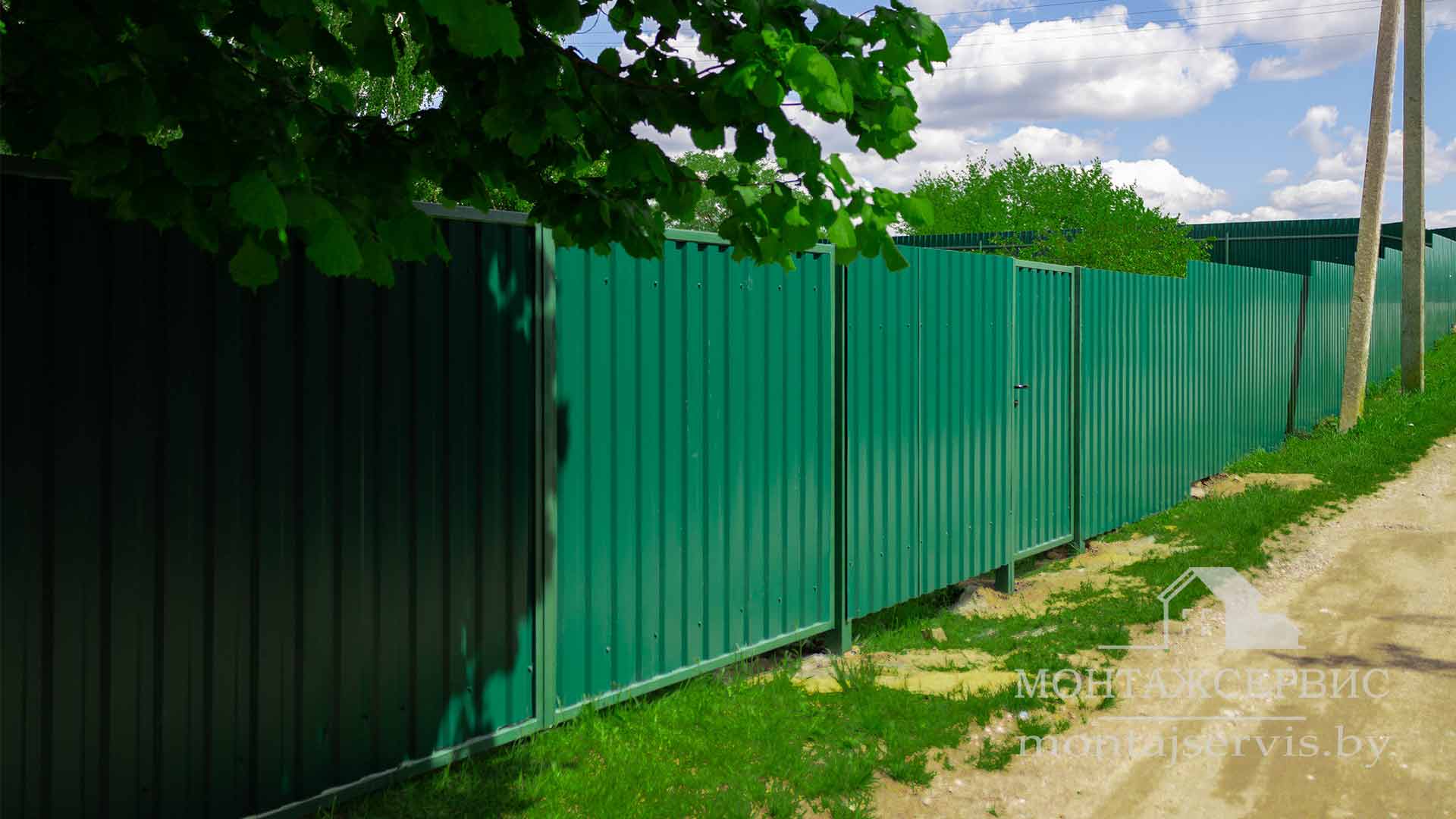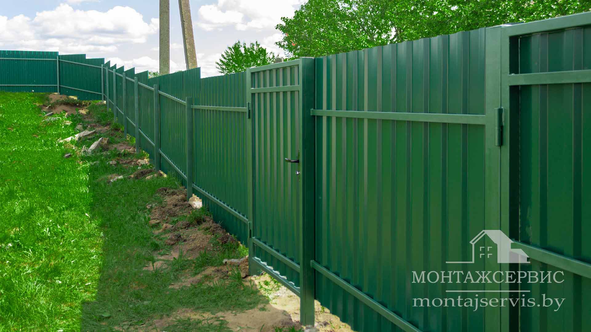 • Монтаж забора из профнастила МП-20 RAL 6005 глянец + ворота распашные + калитка