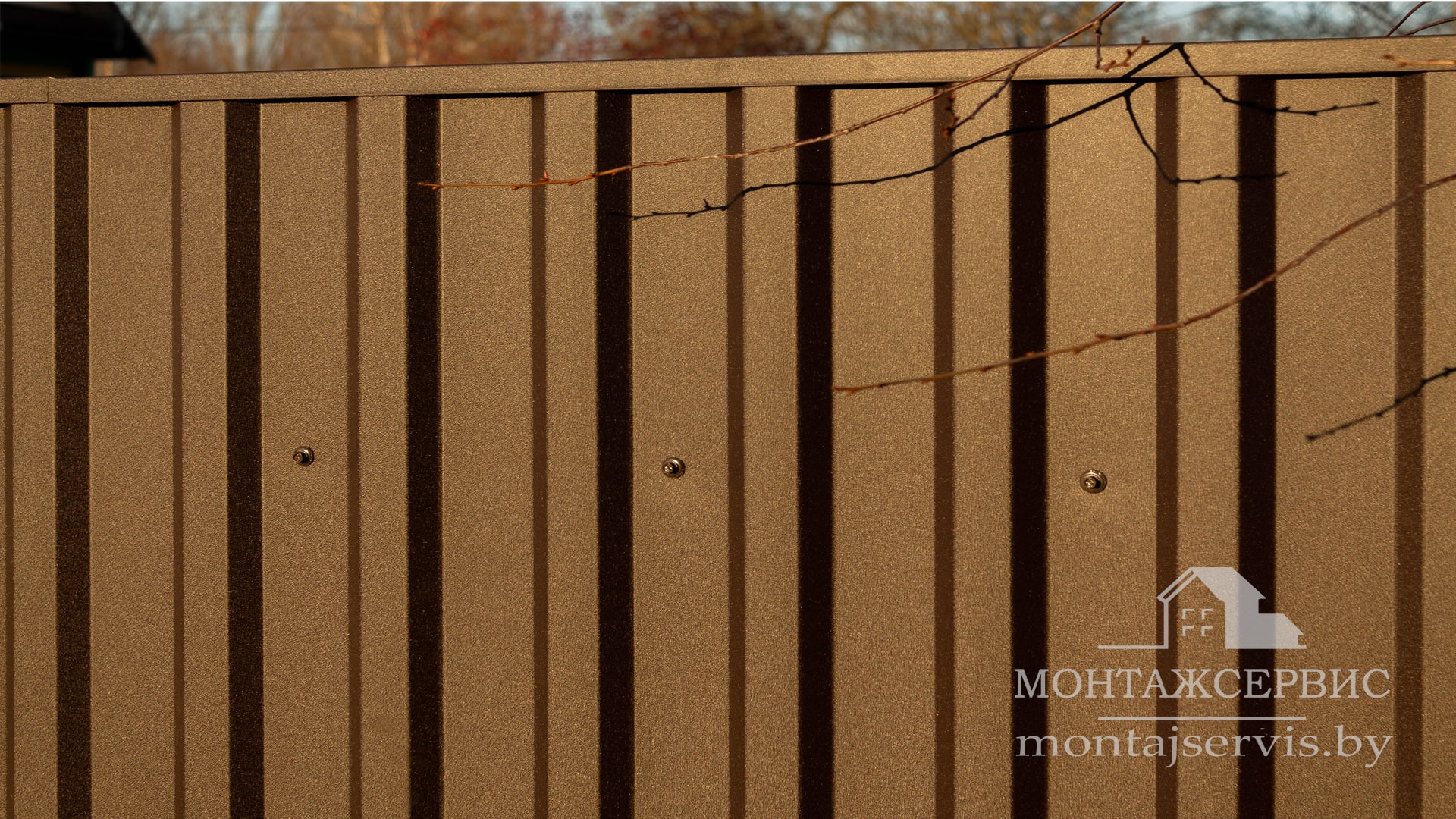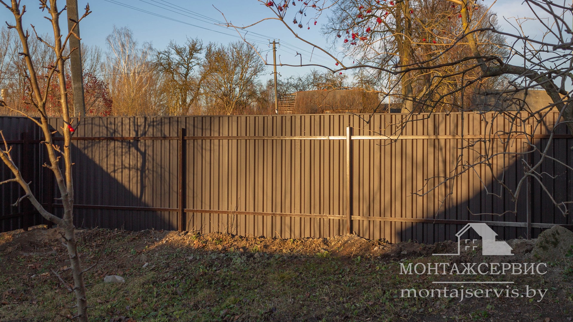 Монтаж забора из профнастила МП-20 RAL 8019 MAT + ворота распашные с калитка