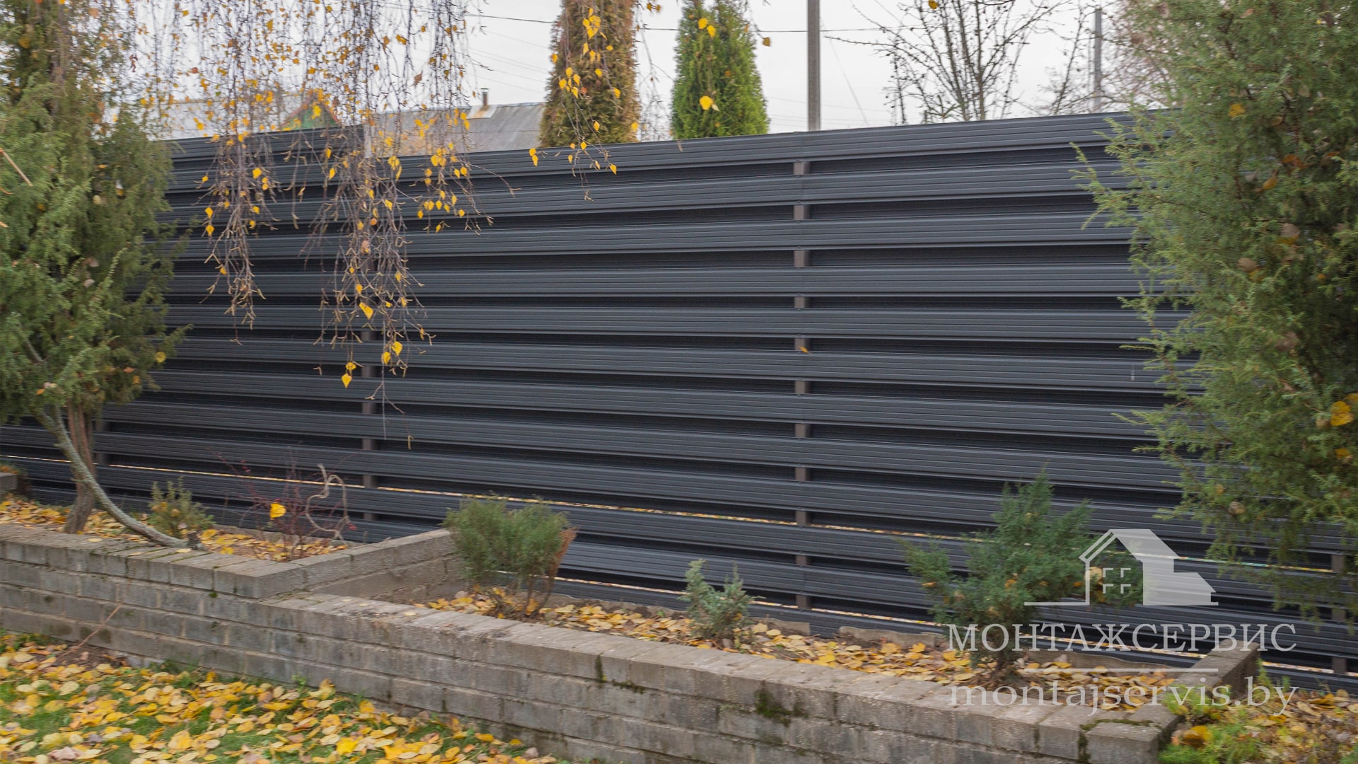 • Монтаж забора РАНЧО из металлического штакетника "КЛАССИК 114 мм" RAl 7024 МАТ"