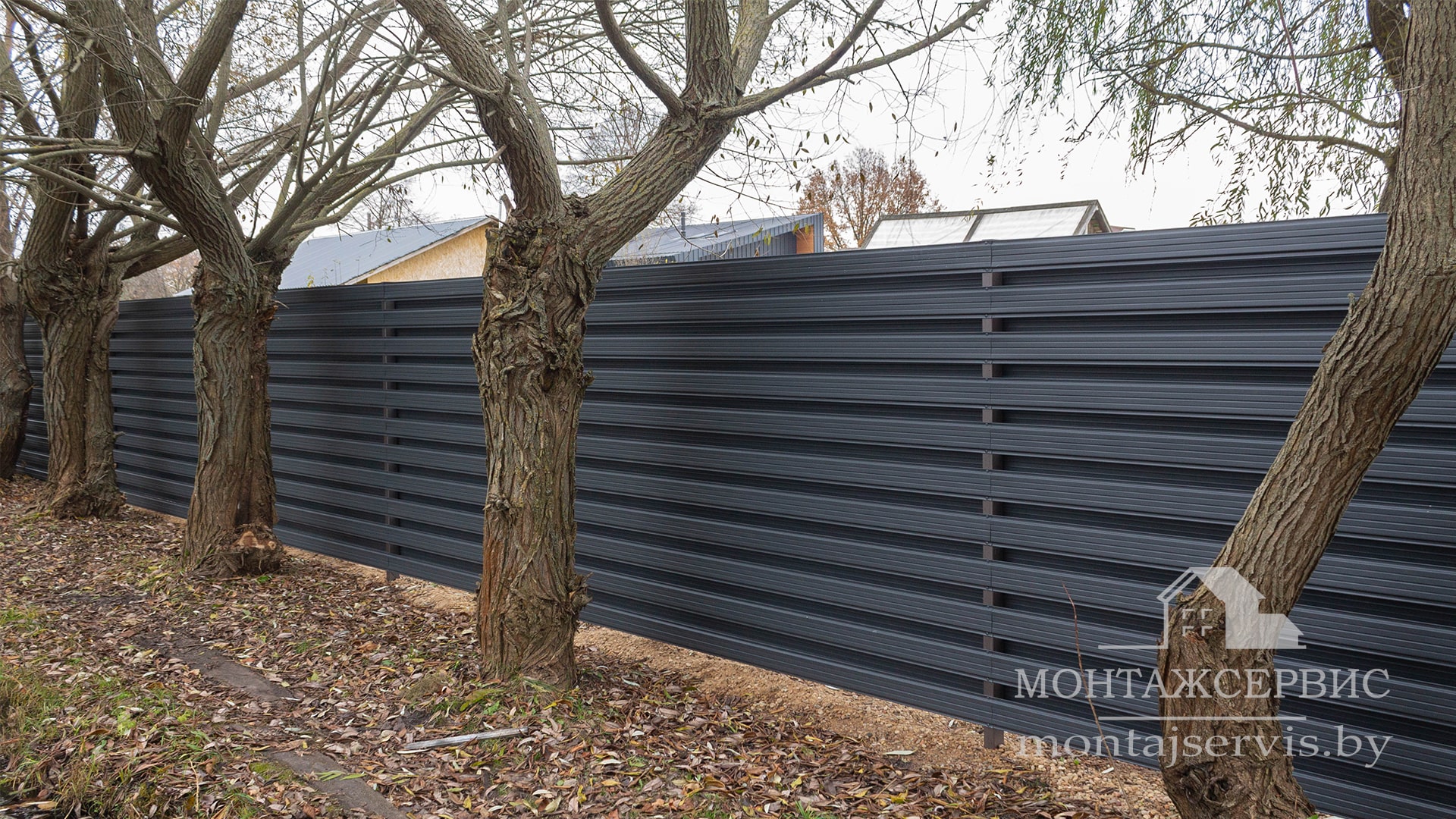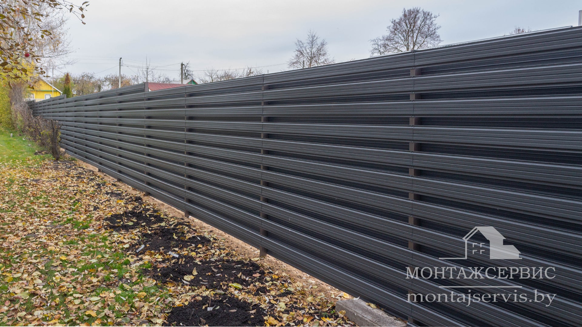 Монтаж забора РАНЧО из металлического штакетника "КЛАССИК 114 мм" RAl 7024 МАТ"