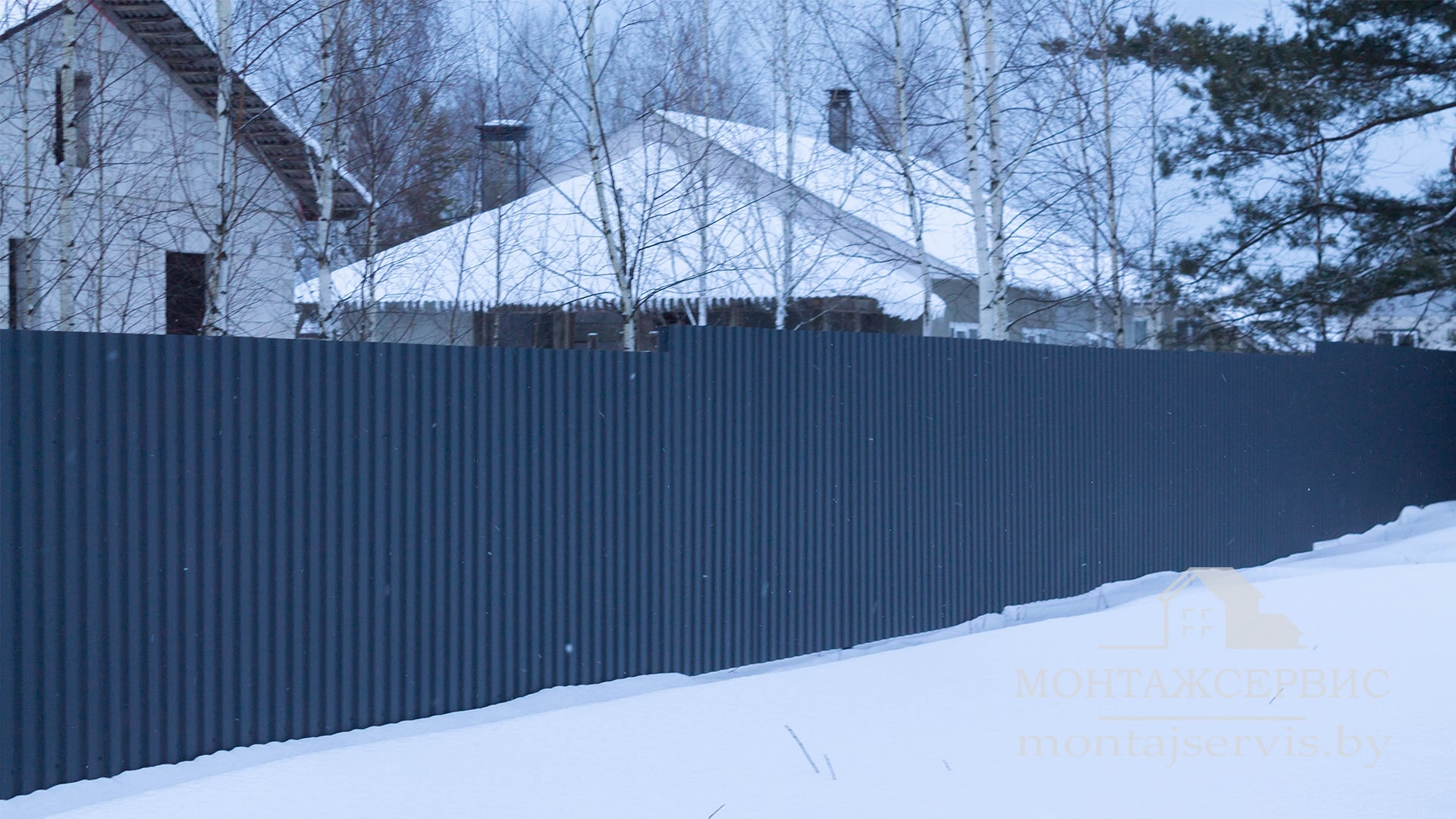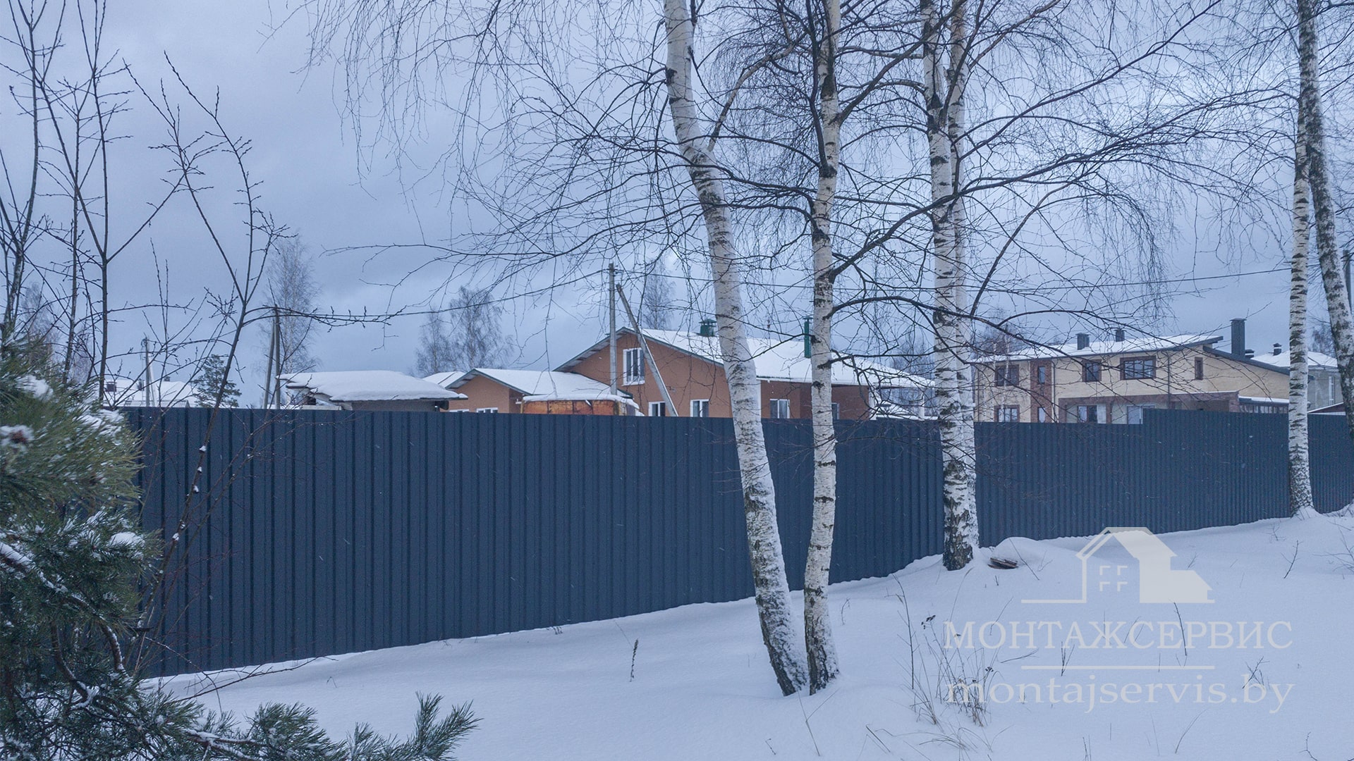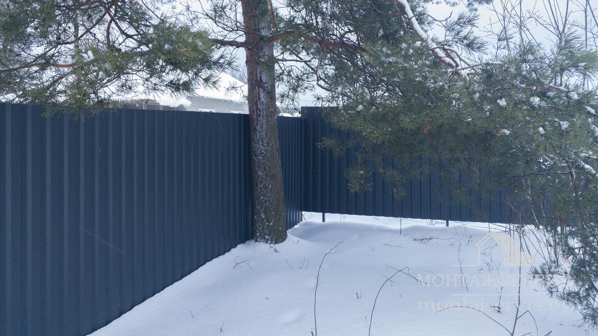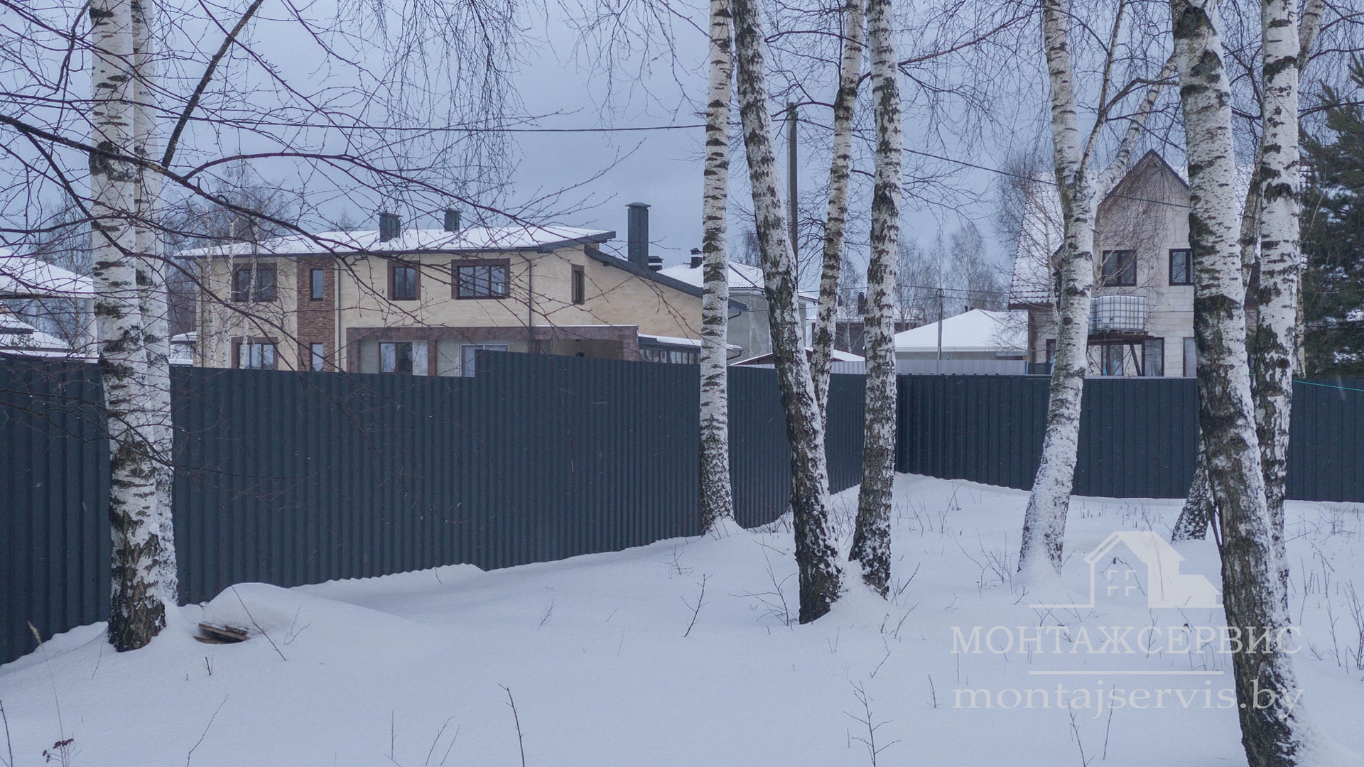 Монтаж забора РАНЧО из металлического штакетника "КЛАССИК 114 мм" RAl 7024 МАТ" + ворота откатные + калитка