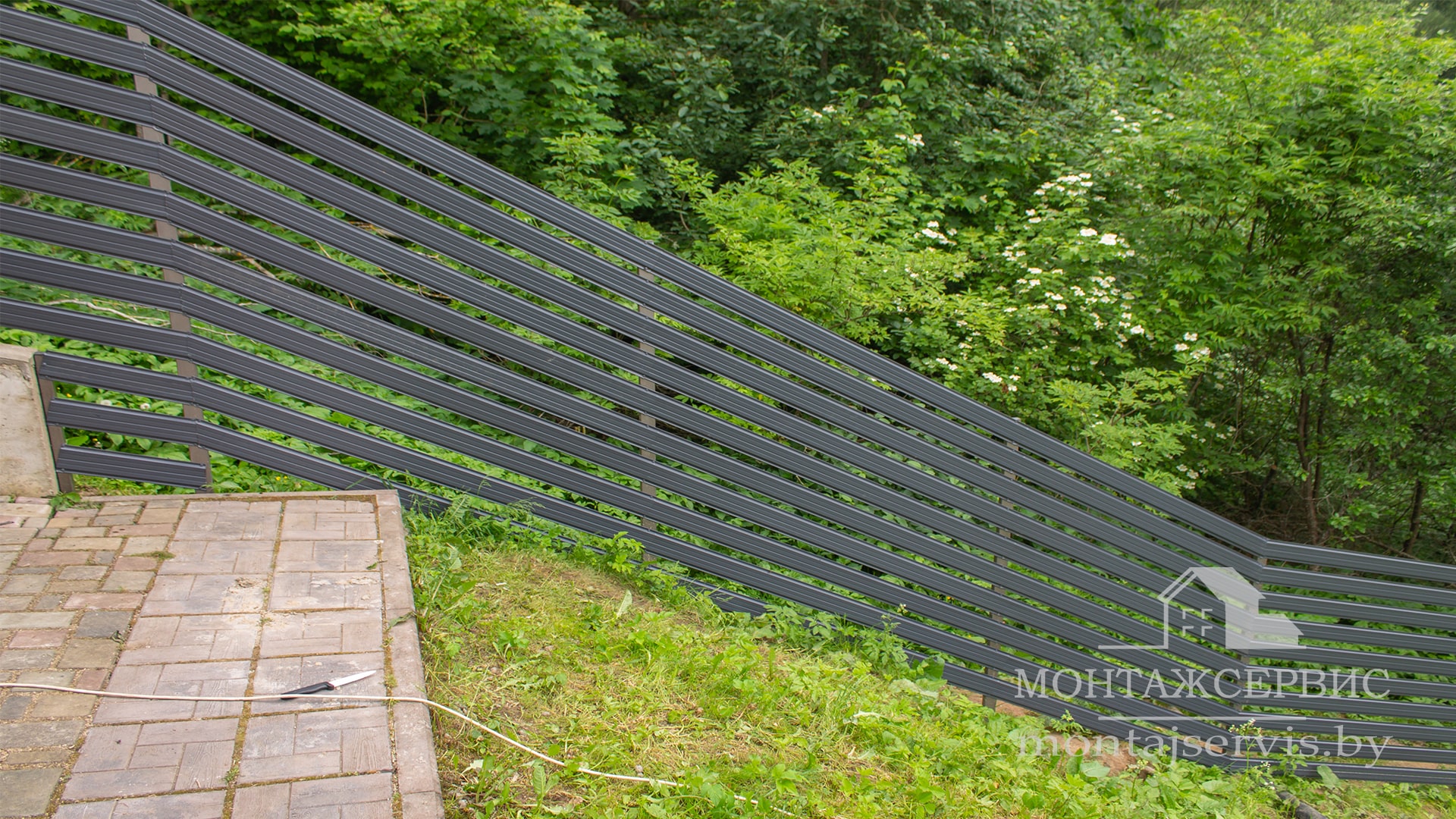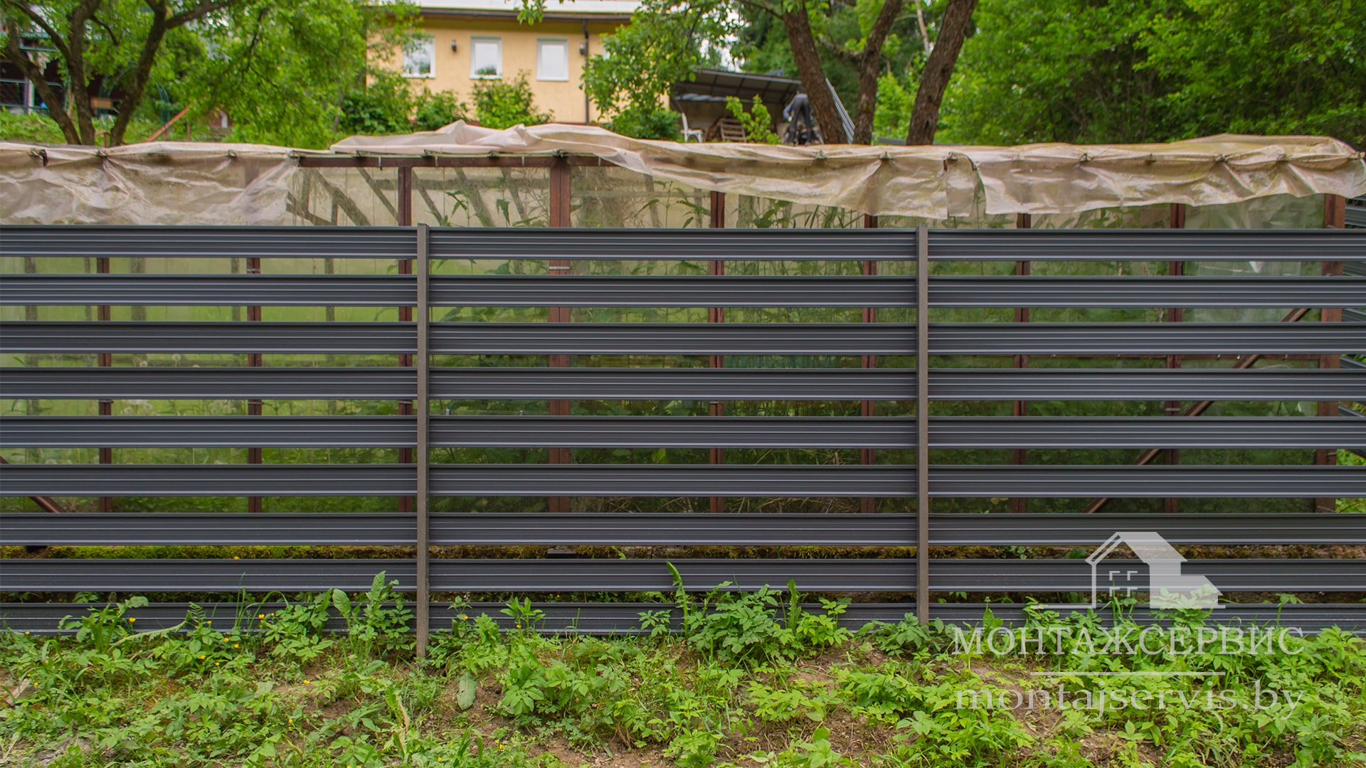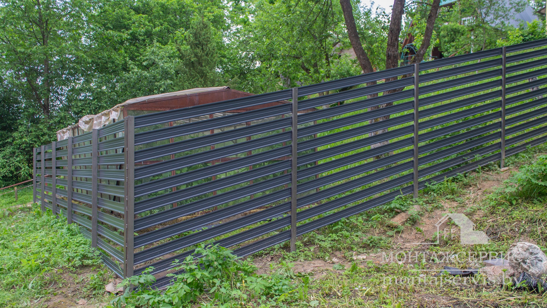 Монтаж забора РАНЧО из металлического штакетника "КЛАССИК" RAl 7024