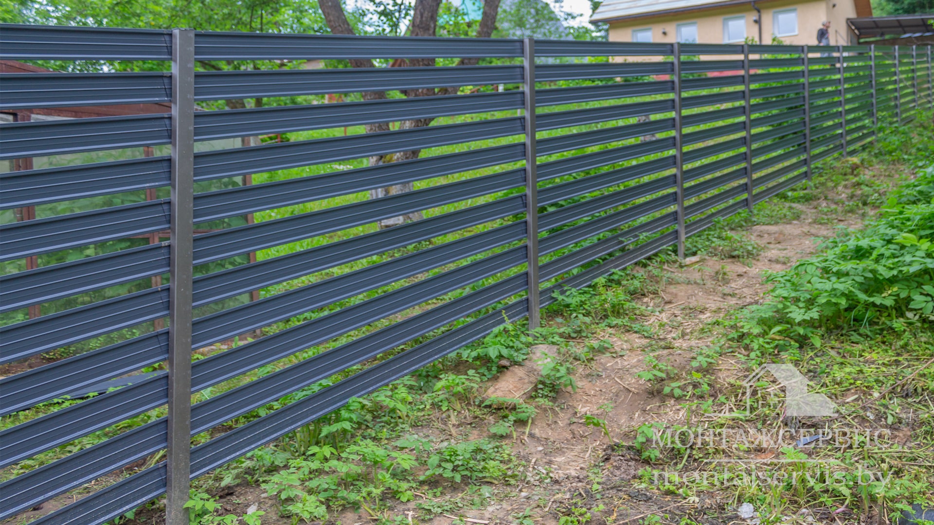 • Монтаж забора РАНЧО из металлического штакетника "КЛАССИК" RAl 7024